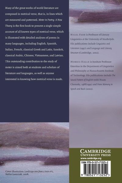 Many of the great works of world literature are composed in metrical verse, that is, in lines which are measured and patterned. Meter in Poetry: A New Theory is the first book to present a single simple account of all known types of metrical verse, which is illustrated with detailed analyses of poems in many languages, including English, Spanish, Italian, French, classical Greek and Latin, Sanskrit, classical Arabic, Chinese, Vietnamese, and Latvian. This outstanding contribution to the study of meter is aimed both at students and scholars of literature and languages, as well as anyone interested in knowing how metrical verse is made.