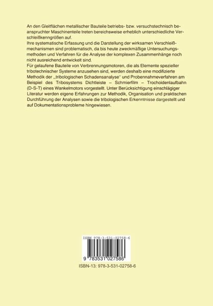 Bei tribologischen Untersuchungen an realen Maschinenelementen ist im allgemeinen zu erwarten, daB in dem BemUhen, relevante Einflullparame ter moglichst vollsUindig zu erfassen, die eigenen Analysen wie auch die begleitende Literaturrecherche erheblichen Umfang annehmen kOnnen. Dies ergab sich ebenfalls beim vorliegenden Forschungsprojekt. 1m Sinne einer Uberschaubaren Berichterstattung wird deshalb hinsichtlich der all gemeinen Problematik und der Grundlagen tribologischer Untersuchungen auf einschlagige Fachliteratur und /1/ verwiesen. 1m folgenden werden vorwiegend die Erfahrungen und Ergebnisse eigener Analysen an einem realen tribotechnischen System dargestellt. - 5 - 1. Abgrenzung des The:mas, Ziele Besti:m:mte Merk:male wie die Verschleil3erscheinungsfor:m konnen wesent liche Hinweise auf den Verschleil3zustand und fur die Opti:mierung der tribotechnischen Ele:mente einer Maschine geben, schon bevor Funktions untuchtigkeit der Bauteile durch Verschleil3beanspruchungen eintritt /2/. Die Betrachtung der Verschleil3flachen ist de:mnach ein wichtiges Hilfs :mittel der Verschleil3analyse. Die Erscheinungsfor:men geben Auskunft, ob durch Storfaktoren andere Verschleil3arten oder andere Wirkungs:mechanis:men auftreten, die den erwarteten Verschleil3bedingungen uberlagert sind und die zunachst nicht vorhersehbar oder nicht zu vermeiden waren. Schlul3folgerungen von den Verschleil3erscheinungsformen auf die wirken den Verschleil3mechanis:men sind allerdings nicht eindeutig zu ziehen, wenn wesentliche Informationen uber Aufbau und Beanspruchungsbedingun gen des Tribosystems fehlen. Dieses Problem tritt verstarkt auf bei der Untersuchung betriebsbean spruchter technischer Tribosysteme, die komplexen Einflussen und Wir kungsmechanis:men unterworfen sind.