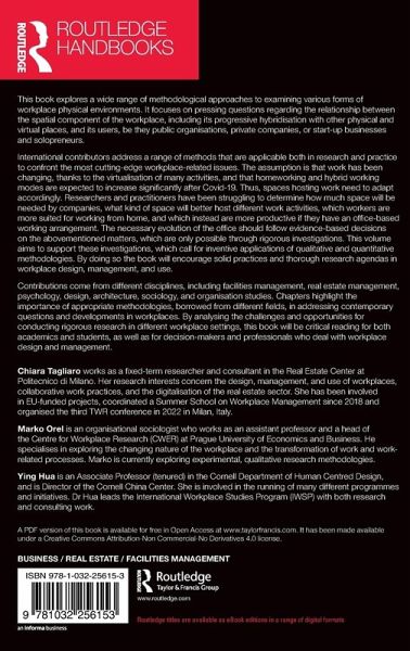 This book explores a wide range of methodological approaches to examining various forms of workplace physical environments. It focuses on pressing questions regarding the relationship between the spatial component of the workplace, including its progressive hybridisation with other physical and virtual places, and its users, be they public organisations, private companies, or start-up businesses and solopreneurs. International contributors address a range of methods that are applicable both in research and practice to confront the most cutting-edge workplace-related issues. The assumption is that work has been changing, thanks to the virtualisation of many activities, and that homeworking and hybrid working modes are expected to increase significantly after Covid-19. Thus, spaces hosting work need to adapt accordingly. Researchers and practitioners have been struggling to determine how much space will be needed by companies, what kind of space will better host different work activities, which workers are more suited for working from home, and which instead are more productive if they have an office-based working arrangement. The necessary evolution of the office should follow evidence-based decisions on the abovementioned matters, which are only possible through rigorous investigations. This volume aims to support these investigations, which call for inventive applications of qualitative and quantitative methodologies. By doing so the book will encourage solid practices and thorough research agendas in workplace design, management, and use. Contributions come from different disciplines, including facilities management, real estate management, psychology, design, architecture, sociology, and organisation studies. Chapters highlight the importance of appropriate methodologies, borrowed from different fields, in addressing contemporary questions and developments in workplaces. By analysing the challenges and opportunities for conducting rigorous research in different workplace settings, this book will be critical reading for both academics and students, as well as for decision-makers and professionals who deal with workplace design and management. The Open Access version of this book, available at www.taylorfrancis.com, has been made available under a Creative Commons Attribution-Non Commercial-No Derivatives (CC-BY-NC-ND) 4.0 license.