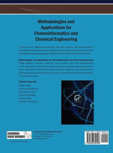 In recent years, significant advances have been made in the development of chemistry and computer science integration into the fields of biomedical and chemical engineering, applying quantum principles to practical, macro-world science. Methodologies and Applications for Chemoinformatics and Chemical Engineering brings together innovative research, new concepts, and novel developments in the application of informatics tools for applied chemistry and computer science. This book is essential amongst chemists, engineers, and researchers in providing mutual communication between academics and industry professionals around the world.