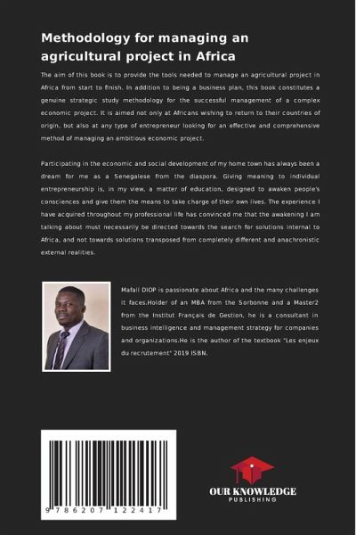 The aim of this book is to provide the tools needed to manage an agricultural project in Africa from start to finish. In addition to being a business plan, this book constitutes a genuine strategic study methodology for the successful management of a complex economic project. It is aimed not only at Africans wishing to return to their countries of origin, but also at any type of entrepreneur looking for an effective and comprehensive method of managing an ambitious economic project.Participating in the economic and social development of my home town has always been a dream for me as a Senegalese from the diaspora. Giving meaning to individual entrepreneurship is, in my view, a matter of education, designed to awaken people's consciences and give them the means to take charge of their own lives. The experience I have acquired throughout my professional life has convinced me that the awakening I am talking about must necessarily be directed towards the search for solutions internalto Africa, and not towards solutions transposed from completely different and anachronistic external realities.