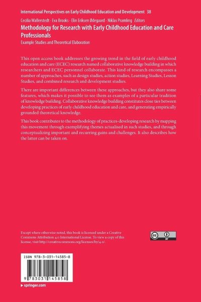 This open access book addresses the growing trend in the field of early childhood education and care (ECEC) research named collaborative knowledge building in which researchers and ECEC personnel collaborate. This kind of research encompasses a number of approaches, such as design studies, action studies, Learning Studies, Lesson Studies, and combined research and development studies.