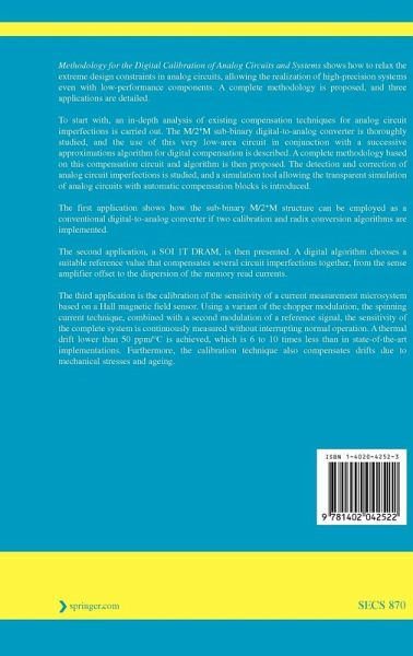 Methodology for the Digital Calibration of Analog Circuits and Systems shows how to relax the extreme design constraints in analog circuits, allowing the realization of high-precision systems even with low-performance components. A complete methodology is proposed, and three applications are detailed.