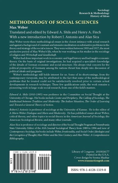 Edited and with a new introduction by Robert J. Antonio and Alan Sica. Max Weber wrote these methodological essays in the closest intimacy with actual research and against a background of constant and intensive meditation on substantive problems in the theory and strategy of the social sciences. They were written between 1903 and 1917, the most productive of Max Weber's life, when he was working on his studies in the sociology of religion and Wirtschaft und Gesellschaft. Weber had done important work in economic and legal history and had taught economic theory. On the basis of original investigations, he had acquired a specialist's knowledge of the details of German economic and social structure. His always vital concern for the political prosperity of Germany among the nations thrust him deeply into discussion of political ideals and programs. Weber's methodology still holds interest for us. Some of its shortcomings, from the contemporary viewpoint, may be attributed to the fact that some of the methodological problems that he treated could not be satisfactorily resolved prior to certain actual developments in research technique. These few qualifications aside, the work remains a pioneering work in large scale social research, from one of the field's masters.