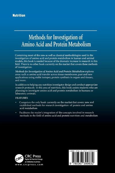 Methods for Investigation of Amino Acid and Protein Metabolism explores areas such as amino acid transfer across tissue membranes, past and new applications using stable isotopes, protein synthesis in organs and tissues, and more. Because of the importance of research methods in the field of amino acid and protein nutrition and metabolism, this book facilitates the reader's integration of the concepts involved in these investigative research methods and their corollaries. In addition to helping any nutrition investigator design and conduct appropriate research protocols in this area of nutrition, this book assists students who are planning to investigate amino acid and protein metabolism in humans or laboratory animals.