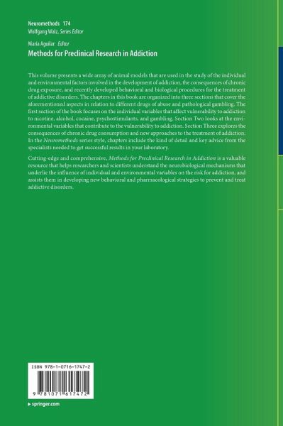 Cutting-edge and comprehensive, Methods for Preclinical Research in Addiction is a valuable resource that helps researchers and scientists understand the neurobiological mechanisms that underlie the influence of individual and environmental variables on the risk for addiction, and assists them in developing new behavioral and pharmacological strategies to prevent and treat addictive disorders.