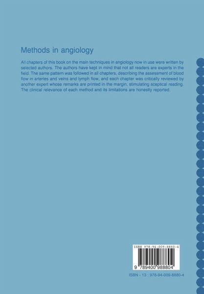 Introduction: Critical Appraisal of the Fifteen Chapters.- 1. The Electromagnetic Flowmeter.- 1. Theory of operation.- 2. Development of the electromagnetic flowmeter.- 3. Selecting a flowmeter for clinical use.- 4. Factors affecting sensitivity.- 5. Procedure for clinical measurements.- 6. Clinical applications.- 7. Interpretation of the arterial flow waveform.- 8. Prospects for future developments.- 2. Plethysmography.- 1. Introduction.- 2. Plethysmographic methods for pulse recording and blood flow measurements.- 3. Venous occlusion plethysmography.- 4. Blood flow in the lower leg.- 3. Isotope Techniques.- 1. Introduction.- 2. The technique of determining the skin perfusion pressure.- 3. Clinical use of skin perfusion pressure.- 4. Why use radioisotopes?.- 4. Doppler Ultrasound Arterial Scanning.- 1. Introduction.- 2. Basic physics.- 3. Handling the probe.- 4. Doppler ultrasound arterial pulse waveforms.- 5. Lower limb Doppler scan.- 6. Arterial aneurysm detection.- 7. Scanning of the head and neck arteries.- 8. Clinical information available from Doppler ultrasound scanning of arteries.- 9. Doppler ultrasound scanning of coronary arteries.- 10. Monitoring foetal circulation.- 11. Health care potential.- 12. Conclusion.- 5. Thermography.- 1. Introduction.- 2. History.- 3. Physiology and physical principles.- 4. Instruments.- 5. Technique.- 6. Head and cerebral vascular disease.- 7. Disorders of the arterial system.- 8. Venous thrombosis and insufficiency.- 9. Lesions of nerves.- 10. Summary.- 6. Noninvasive Pressure Measurements in Arterial Disease.- 1. Introduction.- 2. The cuff.- 3. The sensor.- 4. Normal values.- 5. Validity and reproducibility.- 6. Correlation between flow and pressure measurements.- 7. Limitations.- 8. Clinical application.- 7. Intra-Arterial Pressure.- 1. Basic concepts.- 2. Analysis and use of clinical catheter-manometer systems.- 3. Special processing of pressure recordings.- 8. Blood Viscosity and Red Cell Deformability.- 1. Introduction.- 2. Viscometers.- 3. Interpretation of results.- 4. Clinical applications of blood viscosity measurement.- 5. Red cell flexibility.- 6. Conclusions.- 9. Diagnosis of Deep Vein Thrombosis.- 1. Introduction.- 2. Fibrinogen uptake test (FUT).- 3. Impedance plethysmography (IPG).- 4. Ultrasonic technique.- 5. Radionuclide venography.- 6. Thermography.- 10. Angiography in Angiology.- 1. Introduction.- 2. Equipment for angiography.- 3. Indications for angiography.- 4. Interpretation of angiography.- 5. Angiographic-therapeutic procedures.- 11. Some Little-Used and Obsolete Methods for Studying Peripheral Circulation in Patients with Occlusive Arterial Disease.- 1. Introduction.- 2. The best routine methods.- 3. Some obsolete methods.- 4. Some little-used methods.- 5. Comments on one method that we need to develop.- 12. Venous Pressure Measurement and Foot Volumetry in Venous Disease.- 1. Introduction.- 2. Venous pressure measurement.- 3. Foot volumetry.- 13. Phlebography and Cinephlebography.- 1. Introduction.- 2. Ascending functional phlebography.- 3. Other techniques of phlebography.- 4. Comments.- 14. Lymphography.- 1. Definitions.- 2. Historical review.- 3. Techniques.- 4. Injectors.- 5. Complications from lymphography.- 6. Accidents.- 7. Clinical application.- 15. Guidelines for Clinical Trials Set up to Determine the Usefulness of Drugs in Patients with Symptoms Ascribed to Decreased Flow in a Particular Vascular Area.- 1. Introduction.- 2. Minimum requirements for therapeutic efficacy in clinical trials with agents improving muscle and/or skin flow.