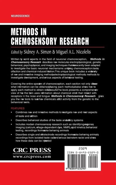 Written by world experts in the field of neuronal chemoreception, Methods in Chemosensory Research describes new molecular, electrophysiological, genetic, behavioral, psychophysical, and imaging techniques that have recently been adapted to investigate the basic neuronal mechanisms underlying chemoreception: taste, olfaction and chemical-induced irritation. This unique book includes a wide variety of new and innovative imaging methods, electrophysiological methods, methods to investigate development, and various aspects of behavioral testing. Covering the entire spectrum of chemoreception, each section not only describes what information can be obtained by using each method, but also shows how to apply each method to obtain reliable results. The book presents a comprehensive view of how the brain uses information about chemical stimuli that interact with receptors in the nose and tongue. Methods in Chemosensory Research gives you the new tools to learn how chemicals affect activity from the genetic to the behavioral levels.