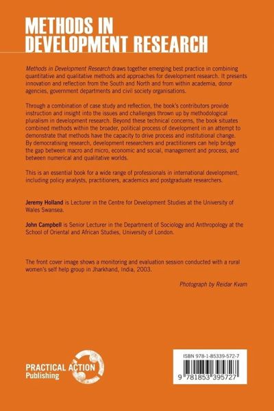This book situates current development research issues squarely within debates about development policy and social research and it will help begin the process of defining best practice in the use of participatory/ qualitative and quantitative methods of considerable interest to academics, practitioners and policy makers.