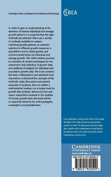 In order to gain an understanding of the dynamics of human individual and average growth patterns it is essential that the right methods are selected. There are a variety of methods available to analyse individual growth patterns, to estimate variation in different growth measures in populations and to relate genetic and environmental factors to individual and average growth. This volume provides an overview of modern techniques for the assessment and collection of growth data and methods of analysis for individual and population growth data. The book contains the basic mathematical and statistical tools required to understand the concepts of the methods under discussion and worked examples of analyses, but it is neither a mathematical treatise, nor a recipe book for growth data analysis. Aimed at junior and senior researchers involved in the analysis of human growth data, this book will be an essential reference for anthropologists, auxologists and paediatricians.