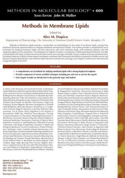 "A compilation of protocols that addresses the ... analysis of membrane lipid structure to polymorphism, lipid domains and (macro-) molecular interactions. It is a timely addition to the series on a topic that begs attention. It is a valuable reference material for researchers in lipidology and practitioners whose work involves understanding membrane structure and function. ... a valuable compilation of biophysical methodologies employed in the study of membrane lipids that will no doubt be useful to anyone with an interest in membrane structure and function." (Dr Seetharaman Vaidyanathan, Molecular Biotechnology, March, 2008)