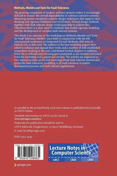 The growing complexity of modern software systems increases the di?culty of ensuring the overall dependability of software-intensive systems. Complexity of environments, in which systems operate, high dependability requirements that systems have to meet, as well as the complexity of infrastructures on which they rely make system design a true engineering challenge. Mastering system complexity requires design techniques that support clear thinking and rigorous validation and veri?cation. Formal design methods help to achieve this. Coping with complexity also requires architectures that are t- erant of faults and of unpredictable changes in environment. This issue can be addressed by fault-tolerant design techniques. Therefore, there is a clear need of methods enabling rigorous modelling and development of complex fault-tolerant systems. This bookaddressessuchacuteissues indevelopingfault-tolerantsystemsas: - Veri?cation and re?nement of fault-tolerant systems - Integrated approaches to developing fault-tolerant systems - Formal foundations for error detection, error recovery, exception and fault handling - Abstractions, styles and patterns for rigorousdevelopment of fault tolerance - Fault-tolerant software architectures - Development and application of tools supporting rigorous design of depe- able systems - Integrated platforms for developing dependable systems - Rigorous approaches to speci?cation and design of fault tolerance in novel computing systems TheeditorsofthisbookwereinvolvedintheEU(FP-6)projectRODIN(R- orous Open Development Environment for Complex Systems), which brought together researchers from the fault tolerance and formal methods communi- 1 ties. In 2007 RODIN organized the MeMoT workshop held in conjunction with theIntegrated Formal Methods 2007 Conference at Oxford University.
