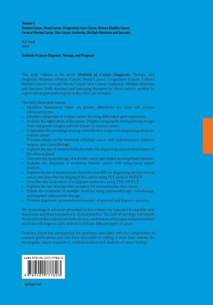 Ovarian Cancer.- Identification of Biomarkers for Clear Cell Ovarian Adenocarcinoma.- Ovarian Carcinoma: Diagnostic Immunohistochemistry of MUCIN4 (MUC4).- Distinguishing Benign from Malignant Complex Adnexal Masses in Ovarian Cancer: Two-Dimensional Power-Doppler Imaging.- Subgroups of Ovarian Carinoma: Identification Using Differential Gene Expression.- Sertoliform Endometrioid Carcinoma of the Ovary: Diagnosis and Prognosis.- Role of MUC16 (CA125) in the Pathogenesis of Epithelial Ovarian Cancer.- Clear Cell Carcinoma of the Ovary: Prognosis Using Cytoreductive Surgery.- Advanced Ovarian Cancer: Prediction of Surgical Outcomes Using Computed Tomography.- Renal Cancer.- Renal Cell Carcinoma: Follow-Up with Magnetic Resonance Imaging After Percutaneous Radiofrequency Ablation.- Metastatic Kidney Cancer: Treatment with Infusional Interleukin-2 Plus Famotidine.- Renal Cell Carcinoma: Preoperative Treatment with Cytokines Followed by Surgery.- Metastatic Renal Cell Carcinoma: Use of Bcl-2 and Fas to Predict Responses to Immunotherapy.- Wilms Tumor: Prognosis Using Microvessel Density.- Urogenitary Tract Cancer.- Adenomatoid Tumor of the Adrenal Gland: Differential Diagnosis Using Immunohistochemistry.- Testicular Cancer: Post-Chemotherapy Retroperitoneal Lymph Node Dissection.- Survivors of Germ-Cell Testicular Cancer: Increased Risk of Second Primary Tumors.- Urinary Bladder Cancer.- Urothelial Bladder Cancer: Screening with Urine-Based Tumor Markers.- Detection of OCT-4 in Bladder Cancer: Role of Cancer Stem Cell.- Cervical Uterine Cancer.- Uterine Cervical Glandular Lesions: Differentiation Using Immunohistochemistry of Mucins.- Uterine Cervical Carcinoma: Preoperative Magnetic Resonance Imaging Staging.- Cancer Imaging and Intracavitary Brachytherapy for Cervical Cancer.- Cervical Cancer: Methods for Assessing the Quality of Life.- Cervical Cancer: Positron Emission Tomography and Positron Emission Tomography/Computed Tomography.- Endometrial Cancer: Indoleamine 2,3-Dioxygenase as a Prognostic Indicator.- Skin Cancer.- Neurofibromatosis Type 1-Associated Malignant Melanoma: Molecular Evidence of Inactivation of the NF1 Gene.- Malignant Melanoma: Localisation and Characterization Using Fluorodeoxyglucose-Positron Emission Tomography/Computed Tomography.- Malignant Melanoma Versus Deep Penetrating Nevus: Diagnostic and Prognostic Immunohistochemistry of Dipeptidyl Peptidase IV (Methodology).- Nonmelanoma Skin Cancer: Use of Epha1 Receptor as a Prognostic Marker.- Leukemia.- Pretreated Chronic Lymphocytic Leukemia: Use of Alemtuzumab.- Multiple Myeloma.- Immunotherapeutic Strategies, Radiotherapy, and Targeted Radionuclide Therapy Approaches for the Treatment of Multiple Myeloma.- Sarcoma.- Low Grade Fibromyxoid Sarcoma: Diagnosis by Detecting FUS-CREB3L2 Fusion Gene Using Reverse Transcription-Polymerase Chain Reaction.- Synovial Sarcoma: Role of TLE1 as a Diagnostic Immunohistochemical Marker.- The Immunohistochemistry of Kaposi's Sarcoma.- Synovial Sarcoma: Role of Immunohistochemistry and Molecular Genetics in Diagnosis and Prognosis.- Sarcoma: Treatment with Ecteinascidin-743.
