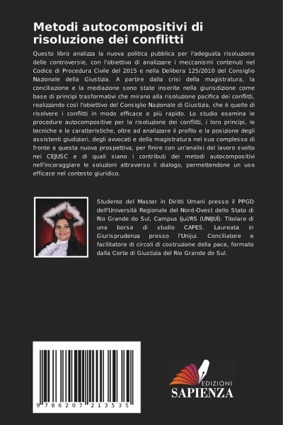 Questo libro analizza la nuova politica pubblica per l'adeguata risoluzione delle controversie, con l'obiettivo di analizzare i meccanismi contenuti nel Codice di Procedura Civile del 2015 e nella Delibera 125/2010 del Consiglio Nazionale della Giustizia. A partire dalla crisi della magistratura, la conciliazione e la mediazione sono state inserite nella giurisdizione come base di principi trasformativi che mirano alla risoluzione pacifica dei conflitti, realizzando così l'obiettivo del Consiglio Nazionale di Giustizia, che è quello di risolvere i conflitti in modo efficace e più rapido. Lo studio esamina le procedure autocompositive per la risoluzione dei conflitti, i loro principi, le tecniche e le caratteristiche, oltre ad analizzare il profilo e la posizione degli assistenti giudiziari, degli avvocati e della magistratura nel suo complesso di fronte a questa nuova prospettiva, per finire con un'analisi del lavoro svolto nei CEJUSC e di quali siano i contributi dei metodi autocompositivi nell'incoraggiare le soluzioni attraverso il dialogo, permettendone un uso efficace nel contesto giuridico.