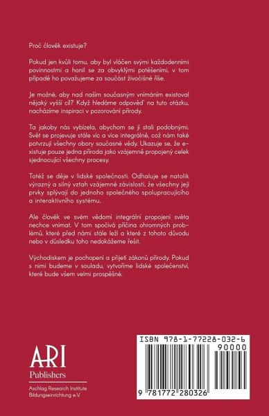 Prö ¿lov¿k existuje? Pokudjen kv¿li tomu, aby byl vlá¿en svými kadodenními povinnostmi a honil se za obvyklými pot¿eními, v tom p¿ípad¿ ho povaujeme za soüást ivöiné ¿íe. Je moné, aby nad naím soüasným vnímáním existoval n¿jaký vyí cíl? Kdy hledáme odpov¿¿ na tuto otázku, nacházíme inspiraci v pozorování p¿írody. Ta jakoby nás vybízela, abychom se jí stali podobnými. Sv¿t se projevuje stále víc a více integráln¿, co nám také potvrzují vechny obory soüasné v¿dy. Ukazuje se, e existuje pouze jedna p¿íroda jako vzájemn¿ propojený celek sjednocující vechny procesy. Toté se d¿je v lidské spole¿nosti. Odhaluje se natolik výrazný a silný vztah vzájemné závislosti, e vechny její prvky splývají do jednoho spole¿ného spolupracujícího a interaktivního systému. Ale ¿lov¿k ve svém v¿domí integrální propojení sv¿ta nechce vnímat. V tom spöívá p¿í¿ina ohromných problém¿, které p¿ed námi stále leí a které z tohoto d¿vodu nebo v d¿sledku toho nedokáeme ¿eit. Východiskem je pochopení a p¿ijetí zákon¿ p¿írody. Pokud s nimi budeme v souladu, vytvöíme lidské spole¿enství, které bude vem velmi prosp¿né.
