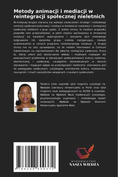 W niniejszej ksi¿¿ce staramy si¿ wykazä skuteczno¿¿ strategii i metodologii animacji spo¿eczno-kulturowej i mediacji w kontek¿cie reedukacji i reintegracji spo¿ecznej nieletnich z grup ryzyka. Z jednej strony, to studium przypadku pozwoli¿o nam przeanalizowä, w jakim stopniu wychowawcy w omawianej instytucji s¿ ¿wiadomi wykorzystania i znaczenia tych metodologii (odgrywanie ról, dynamika grupy, metody nieingeruj¿ce, metody audiowizualne) w ramach programu reedukacyjnego instytucji. Z drugiej strony ma na celu sprawdzenie, na ile nieletni internowani w Centrum Szkoleniowym s¿ reprezentatywni dla w¿asnej reintegracji spo¿ecznej. Praca ta, której celem jest dostarczenie wk¿adu i mo¿liwych rozwi¿zä dla powszechnych problemów w dzisiejszych spo¿ecze¿stwach (natury rodzinnej, ekonomicznej i spo¿ecznej, szczególnie do¿wiadczanych w okresie dojrzewania i maj¿cych wp¿yw na przest¿pczo¿¿ nieletnich), skierowana jest do pedagogów spo¿ecznych, socjologów, animatorów kultury, mediatorów, nauczycieli i innych specjalistów zwi¿zanych z naukami spo¿ecznymi.
