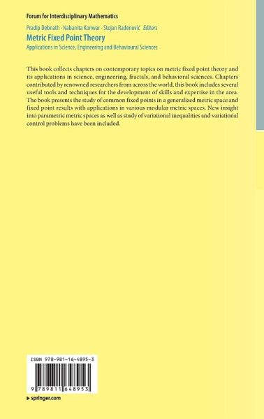 This book collects chapters on contemporary topics on metric fixed point theory and its applications in science, engineering, fractals, and behavioral sciences. Chapters contributed by renowned researchers from across the world, this book includes several useful tools and techniques for the development of skills and expertise in the area. The book presents the study of common fixed points in a generalized metric space and fixed point results with applications in various modular metric spaces. New insight into parametric metric spaces as well as study of variational inequalities and variational control problems have been included.