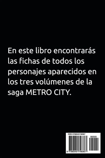 En este libro encontrarás las fichas de todos los personajes aparecidos en los tres volúmenes de la saga METRO CITY.
