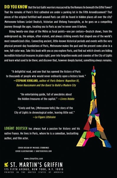 A phenomenal bestseller in France, Metronome presents a fascinating history of Paris through the lens of the city's iconic Metro system Did you know that the last Gallic warriors massacred by the Romans lie beneath the Eiffel Tower? That the remains of Paris's first cathedral are under a parking lot in the Fifth District? Metronome follows Loránt Deutsch, historian and lifelong Francophile, as he goes on a compelling journey through the ages, treating readers to Paris as they've never seen it before. Using twenty-one stops of the subway system as focal points-one per century-Deutsch shows, from the underground up, the unique, often violent, and always striking events that shaped one of the world's most romanticized city. Readers will find out which streets are hiding incredible historical treasures in plain sight; peer into forgotten nooks and crannies of the City of Lights and learn what used to be there; and discover that, however deeply buried, something always remains.
