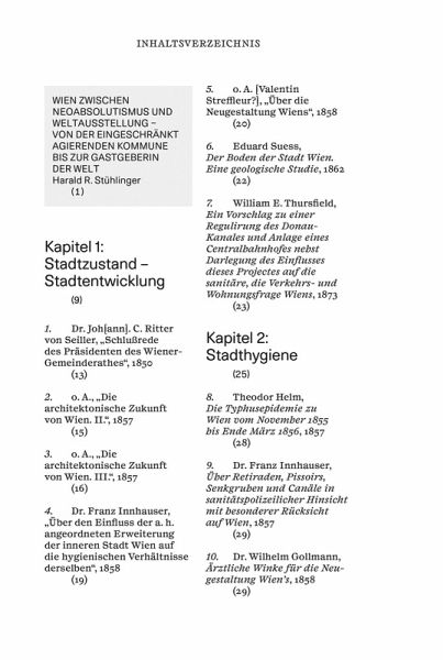 Die wichtigsten zeitgenössischen Texte zu Wien 1850-1945 Chronologisch aufgebaut und nach Themen geordnet Texte von zeitgenössischen Architekt:innen, Soziolog:innen, politischen Theoretiker:innen, Kritiker:innen, Romanciers und Journalist:innen