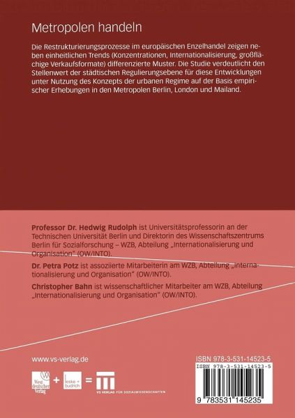 Die Restrukturierungsprozesse im europäischen Einzelhandel zeigen neben einheitlichen Trends (Konzentration, Internationalisierung, großflächige Verkaufsformate) differenzierte Muster. Die Studie verdeutlicht den Stellenwert der städtischen Regulierungsebene für diese Entwicklungen unter Nutzung des Konzepts der urbanen Regime auf der Basis empirischer Erhebungen in den Metropolen Berlin, London und Mailand.