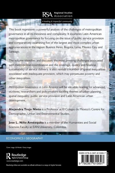 This book examines Latin American metropolitan governance by focusing on the issue of public service provision and comparatively examining five of the largest and most complex urban agglomerations in the region: Buenos Aires, Bogota, Lima, Mexico City and Santiago.