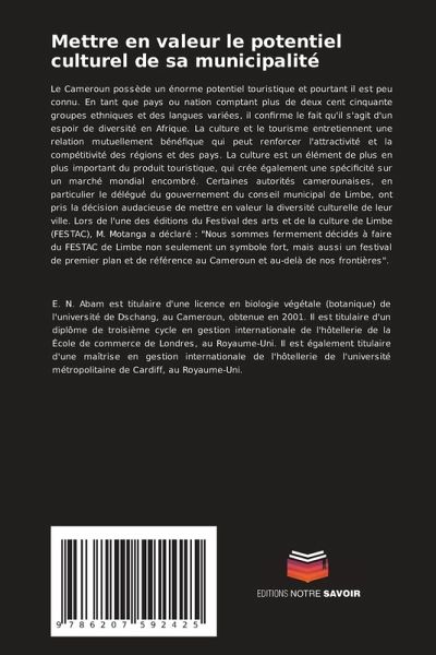 Le Cameroun possède un énorme potentiel touristique et pourtant il est peu connu. En tant que pays ou nation comptant plus de deux cent cinquante groupes ethniques et des langues variées, il confirme le fait qu'il s'agit d'un espoir de diversité en Afrique. La culture et le tourisme entretiennent une relation mutuellement bénéfique qui peut renforcer l'attractivité et la compétitivité des régions et des pays. La culture est un élément de plus en plus important du produit touristique, qui crée également une spécificité sur un marché mondial encombré. Certaines autorités camerounaises, en particulier le délégué du gouvernement du conseil municipal de Limbe, ont pris la décision audacieuse de mettre en valeur la diversité culturelle de leur ville. Lors de l'une des éditions du Festival des arts et de la culture de Limbe (FESTAC), M. Motanga a déclaré : "Nous sommes fermement décidés à faire du FESTAC de Limbe non seulement un symbole fort, mais aussi un festival de premier plan et de référence au Cameroun et au-delà de nos frontières".