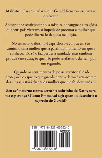 Maldito... Essa é a palavra que Gerald Kenston usa para se descrever. Apesar de se sentir sozinho, a mistura de sangue e a tragédia que seus pais viveram, o impede de procurar a mulher que pode libertá-lo daquela maldição. No entanto, o destino é caprichoso e coloca em seu caminho uma mulher que, a partir do momento em que a conhece, não só o faz perder a sanidade, mas também produz tanta atração que não pode se afastar dela nem por um segundo. Quando os sentimentos de posse, territorialidade, proteção e o espírito que guarda dentro de você renascerem das cinzas, estará diante da mulher que lhe foi destinada. Seu avô paterno estava certo? A sobrinha de Kathy será sua esperança? Como Emma vai agir quando descobrir o segredo de Gerald?
