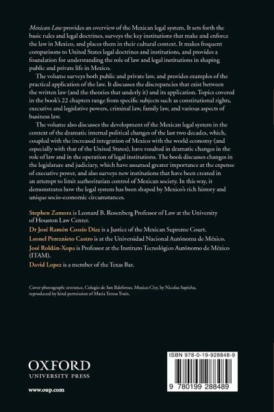 Mexican Law provides an overview of the Mexican legal system. In addition to setting forth rules and legal doctrines (with reference to the practical application of the law), this volume surveys the key institutions that make and enforce the law in Mexico, and places them in their historical and cultural context. The book makes frequent comparisons to United States legal doctrines and institutions, and provides a foundation for understanding the roles of law and legal institutions in shaping public and private life in Mexico.