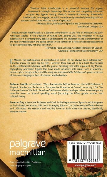 "Mexican Public Intellectuals is an essential resource for anyone interested in thought leadership. This incisive and compelling collection analyzes key figures among Mexico's 21st century 'intermedial intellectuals' who engage the public conscience by creatively blending political activism and critique with the power of spectacle." - Rebecca Biron, Professor of Spanish and Comparative Literature, Dartmouth College, USA