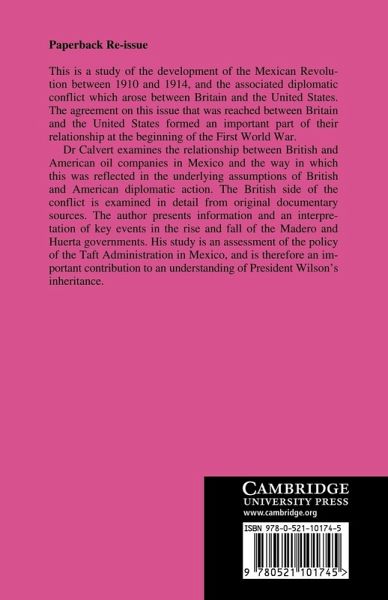 This is a study of the development of the Mexican Revolution between 1910 and 1914 and the associated diplomatic conflict which arose between Britain and the United States. The agreement on this issues that was reached between Britain and the United States formed an important part of their relationship at the beginning of the First World War. Dr Calvert examines the relationship between British and American oil companies in Mexico and the way in which this was reflected in the underlying assumptions of British and American diplomatic action. The British side of the conflict is examined in detail from original documentary sources. The author presents information and an interpretation of key events in the rise and fall of the Madero and Huerta governments. His study is an assessment of the policy of the Taft Administration in Mexico and is therefore an important contribution to an understanding of President Wilson's inheritance.