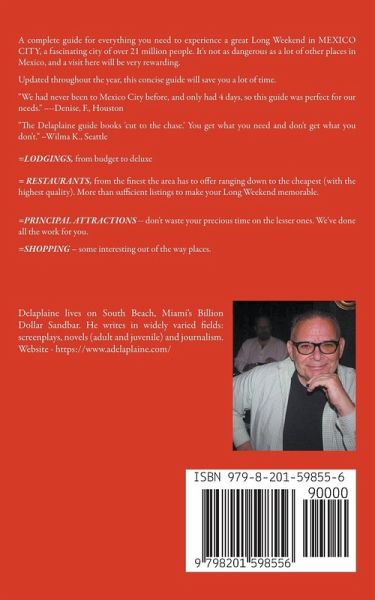 A complete guide for everything you need to experience a great Long Weekend in MEXICO CITY, a fascinating city of over 21 million people. It's not as dangerous as a lot of other places in Mexico, and a visit here will be very rewarding. Updated throughout the year, this concise guide will save you a lot of time. "We had never been to Mexico City before, and only had 4 days, so this guide was perfect for our needs." –--Denise, F., Houston "The Delaplaine guide books 'cut to the chase.' You get what you need and don't get what you don't." –Wilma K., Seattle =LODGINGS, from budget to deluxe = RESTAURANTS, from the finest the area has to offer ranging down to the cheapest (with the highest quality). More than sufficient listings to make your Long Weekend memorable. =PRINCIPAL ATTRACTIONS -- don't waste your precious time on the lesser ones. We've done all the work for you. =SHOPPING – some interesting out of the way places.