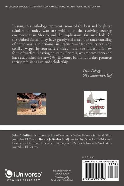 In sum, this anthology represents some of the best and brightest scholars of today who are writing on the evolving security environment in Mexico and the implications this may hold for the United States. They have greatly enhanced our understanding of crime wars and criminal insurgencies-21st century war and conflict waged by non-state entities- and the impact this new form of warfare is having on states. For this, we embrace them and have established the new SWJ El Centro forum to further promote their professionalism and scholarship. Dave Dilegge SWJ Editor-in-Chief