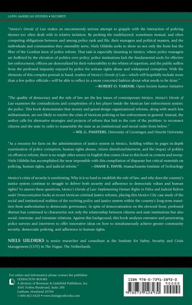 Mexico's Unrule of Law: Human Rights and Police Reform Under Democratization looks at recent Mexican criminal justice reforms. Using Mexico City as a case study of the social and institutional realities, Niels Uildriks focuses on the evolving police and justice system within the county's long-term transition from authoritarian to democratic governance. By analyzing extensive and penetrating police surveys and interviews, he goes further to offer innovative ideas on how to simultaneously achieve greater community security, democratic policing, and adherence to human rights.