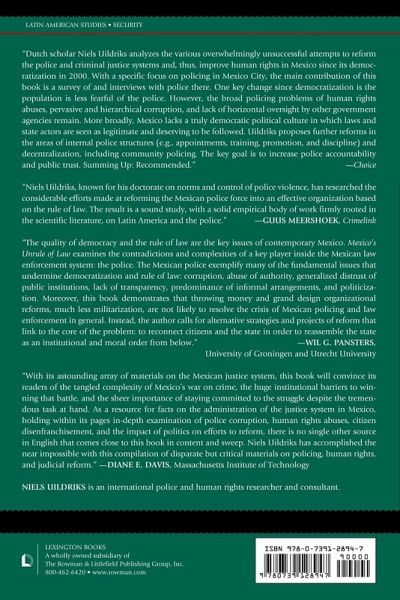 Mexico's Unrule of Law: Human Rights and Police Reform Under Democratization looks at recent Mexican criminal justice reforms. Using Mexico City as a case study of the social and institutional realities, Niels Uildriks focuses on the evolving police and justice system within the county's long-term transition from authoritarian to democratic governance. By analyzing extensive and penetrating police surveys and interviews, he goes further to offer innovative ideas on how to simultaneously achieve greater community security, democratic policing, and adherence to human rights.