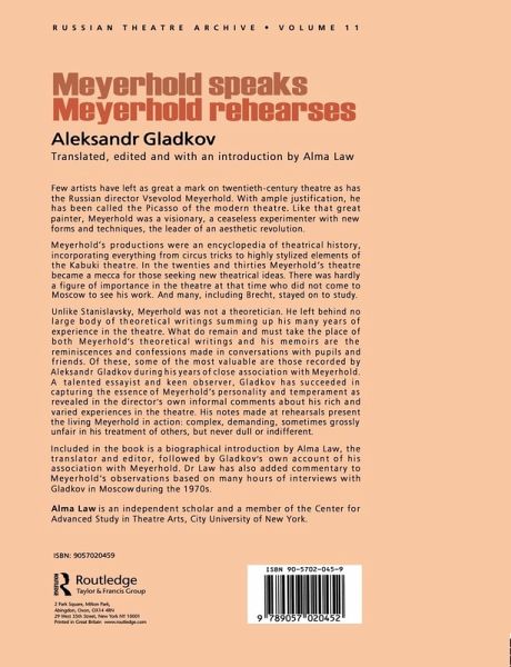 Few artists have left as great a mark on twentieth-century theatre as has the Russian director Vsevolod Meyerhold. With ample justification, he has been called the Picasso of the modern theatre. Like that great painter, Meyerhold was a visionary, a ceaseless experimenter with new forms and techniques, the leader of an aesthetic revolution. Meyerhold's productions were an encyclopedia of theatrical history, incorporating everything from circus tricks to highly stylized elements of the Kabuki theatre. In the twenties and thirties, Meyerhold's theatre became a mecca for those seeking new theatrical ideas. There was hardly a figure of importance in the theatre at that time who did not come to Moscow to see his work. And many, including Brecht, stayed on to study. Unlike Stanislavsky, Meyerhold was not a theoretician. He left behind no large body of theoretical writings summing up his many years of experience in the theatre. What do remain and must take the place of both Meyerhold's theoretical wr