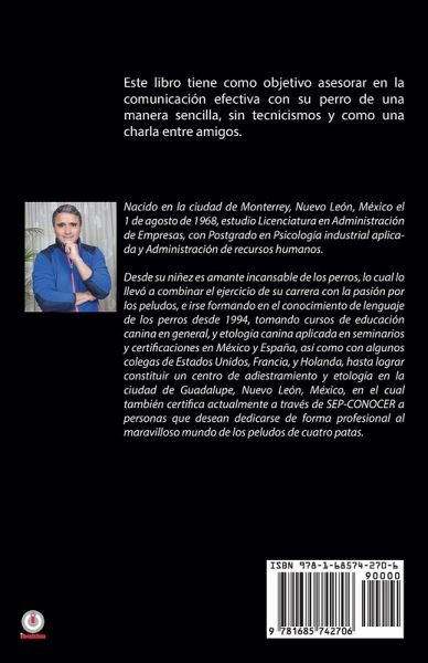 Este libro tiene como objetivo asesorar en la comunicación efectiva con su perro de una manera sencilla, sin tecnicismos y como una charla entre amigos. Nacido en la ciudad de Monterrey, Nuevo León, México el 1 de agosto de 1968, estudió Licenciatura en Administración de Empresas, con Postgrado en Psicología industrial aplicada y Administración de recursos humanos. Desde su niñez es amante incansable de los perros, lo cual lo llevó a combinar el ejercicio de su carrera con la pasión por los peludos, e irse formando en el conocimiento de lenguaje de los perros desde 1994, tomando cursos de educación canina en general, y etología canina aplicada en seminarios y certificaciones en México y España, así como con algunos colegas de Estados Unidos, Francia y Holanda, hasta lograr constituir un centro de adiestramiento y etología en la ciudad de Guadalupe, Nuevo León, México, en el cual también certifica actualmente a través de SEP-CONOCER a personas que desean dedicarse de forma profesional al maravilloso mundo de los peludos de cuatro patas.