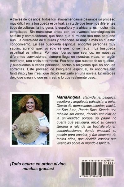 A través de los años, todos los latinoamericanos pasamos un proceso muy difícil en la búsqueda espiritual, a raíz de que tenemos diferentes tipos de culturas: la indígena, la española y la africana; es mucho más complicado. Sin mencionar ahora con los avances tecnológicos de satélite y computadoras, que hace que el mundo sea más pequeño aún. La diversidad de culturas y creencias se amplía más en nuestro conocimiento. En esa búsqueda espiritual encontré personas muy sabias; aprendí que: yo solo sé que no sé nada... La búsqueda espiritual es infinita. Por más fuertes que seamos, en nuestras diferentes convicciones, siempre llega en nuestras vidas, en algún momento, una crisis o tormenta de vida. Eso hace que nuestra fe se quiebre, y busquemos a veces personas, sectas o religiones que no son las correctas. Este proceso de búsqueda espiritual, lo encontré tan fantástico y tan irreal, que decidí realizarlo en una novela. En ustedes dejo en identificar lo que es irreal, o lo que realmente pasó...María Angela