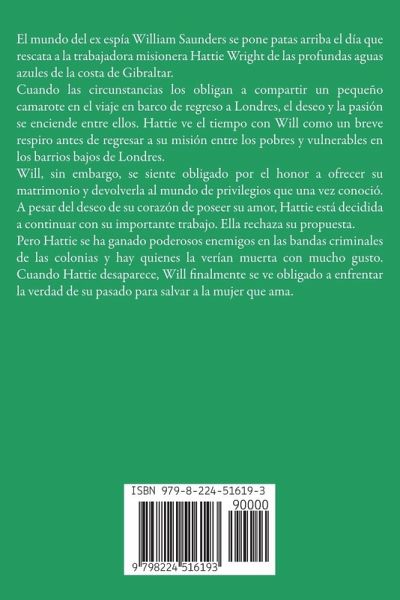 El mundo del ex espía William Saunders se pone patas arriba el día que rescata a la trabajadora misionera Hattie Wright de las profundas aguas azules de la costa de Gibraltar. Cuando las circunstancias los obligan a compartir un pequeño camarote en el viaje en barco de regreso a Londres, el deseo y la pasión se enciende entre ellos. Hattie ve el tiempo con Will como un breve respiro antes de regresar a su misión entre los pobres y vulnerables en los barrios bajos de Londres. Will, sin embargo, se siente obligado por el honor a ofrecer su matrimonio y devolverla al mundo de privilegios que una vez conoció. A pesar del deseo de su corazón de poseer su amor, Hattie está decidida a continuar con su importante trabajo. Ella rechaza su propuesta. Pero Hattie se ha ganado poderosos enemigos en las bandas criminales de las colonias y hay quienes la verían muerta con mucho gusto. Cuando Hattie desaparece, Will finalmente se ve obligado a enfrentar la verdad de su pasado para salvar a la mujer que ama.
