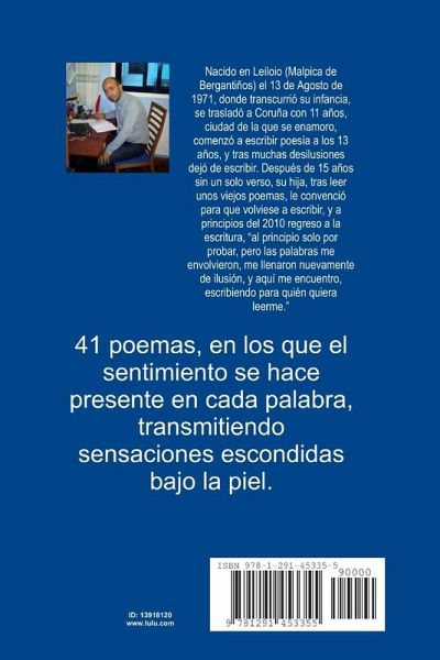 41 poemas, en los que el sentimiento se hace presente en cada palabra, transmitiendo sensaciones escondidas bajo la piel.