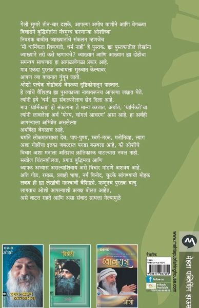 With his infallible power of speech, unfailing voice and peculiar thoughts, Osho has captivated the highly intellectual people. This book is the collection of 22 of his selected lectures. Actually, calling them lecture is an injustice to them, they are a blend of lectures and legends, they blend together all the qualities of these two forms. Once we start reading this book, we will not be able to notice the time that is passing, we will be lost in it. The title itself is a symbol that Osho considers everything from a different angle. In this book, he intersected the word `religion`. He admits to being religious though. For him true religiousness lies in being good, and having a perfect conduct. Have we understood it earlier? Religion has affected the public opinion tremendously. It has influenced the society with views like god, sin and virtue, heaven and hell, resolution of mind, sacrifice, etc. Naturally, such a person will find Osho`s thoughts rebellious. It is impossible to come up with such thoughts unless one has studied pervasively, contemplated in depth and has immense intelligence. The peculiar features of Osho"s lectures are his sweet language with continuous flow, humour, and the jokes that he tells in between. Reading the book is like having a conversation with him in real. Even after completing the book we hear his dialogues in our mind. We keep on floating in the same environment for a long time.