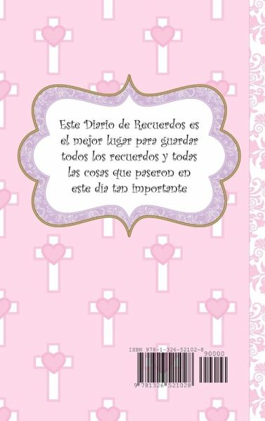 Este Diario de recuerdos de tu Primera Comunión es el mejor lugar para guardar todos los recuerdos y todas las cosas que pasaron en este día tan importante para ti. En el día de tu primera comunión te unes a Jesús de una manera especial y querrás recordar todo acerca del día en que recibiste por primera vez el sacramento de la Santa Comunión. Un libro es un lugar genial para guardar seguros tus recuerdos. ¡Lo más bonito de este libro es que es creado por TI! Tú llenas los espacios en blanco y añades tus propias imágenes y palabras para crear un libro de recuerdos personales de tu primera comunión. Consigue algunos lápices de colores y tal vez un poco de brillo y diviértete llenando tu libro. No hay prisa. Tómate tu tiempo y disfrútalo.