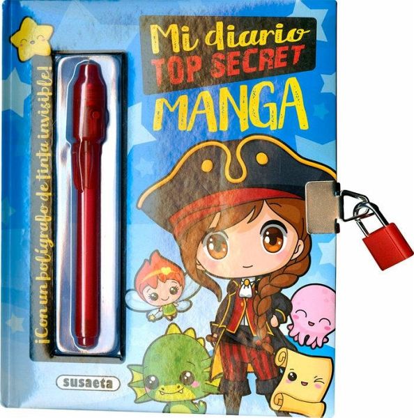 ¿Tienes ideas geniales e importantes secretos que necesitas guardar a buen recaudo? Escríbelos en tu diario TOP SECRET MANGA, lleno de ilustraciones del universo de los famosos cómics japoneses, y utiliza el bolígrafo mágico: ¡nadie los descubrirá nunca!