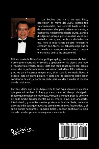 Los hechos que narro en este libro, ocurrieron en Mayo del 2006. Fueron tan trascendentales, que necesité hasta octubre de ese mismo año, para ordenar mi mente, y escribirlos. He demorado hasta el 2011 para su divulgación, porque pensé muchas veces que nadie los creería, y no debía por ello hablar de eso. pero la importancia de este "encuentro cercano" con Aliens, y el fabuloso viaje que dí en una de sus naves, requieren que yo cumpla el mandato que se me encomendó El libro consta de 16 capítulos, prólogo, epílogo y un breve vocabulario. Y creo que su narrativa es sencilla y apasionante. No pienso que todo el mundo va a creerlo, pero si insto que todo aquel que lo lea,-crea o no en aliens-, reflexione sobre una verdad ineludible: Ellos están aquí, y no es para hacernos ningún mal, sino todo lo contrario.Nuestro especie está en grave peligro, y cada uno de nosotros debe tener conciencia de eso, y hacer su parte para ayudar a cuidar el mundo donde habitamos Por muy difícil que se les haga creer lo que aquí van a leer, piensen que para mi también lo fué, y por eso me costó tiempo divulgarlo. Espero que mediten en todo esto, y sepan la verdad, pues lo objetivo de cada hecho transcendental no es creerlo o no, sino analizarlo, interiorizarlo, y cambiar nuestra postura en la vida diaria, haciendo algo cada dia para que nuestros semejantes menos favorecidos, y el suelo donde habitamos, -llamado Tierra-, puedan continuar su ciclo de vida para las generaciones que nos sucederán.