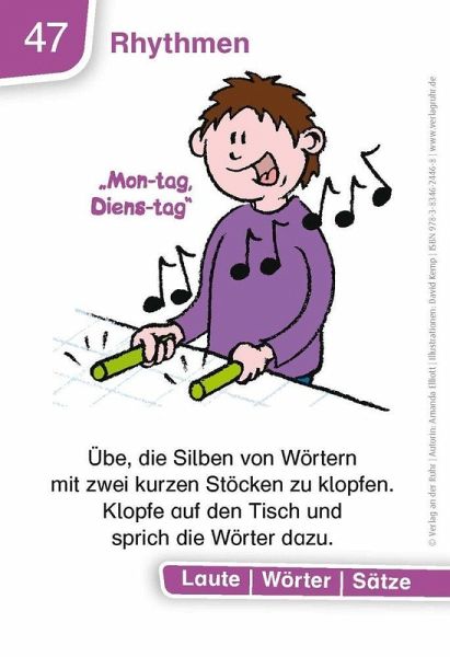 Übungsmaterial für Sprachförderunterricht und Förderunterricht an Grundschulen, Förderschulen, Gesamtschulen und Sprachheilschulen, Klasse 1-4, sowie in Frühpädagogik, Kita und Kindergarten, außerschulischer Sprachtherapie und Logopädie +++ "Reden lernt man nur durch reden", sagte Cicero einmal. Ob zur Förderung in der Schuleingangsphase oder als kleine Aktivierung bei der Sprecherziehung: Diese 56 bunten Spielkarten fördern mit kleinen, spielerischen Übungen zu Grundfähigkeiten des Sprechens Sprache und Kommunikation auf kindgerechte Weise. Ansprechend illustriert und selbsterklärend, liefern die Karten Sprechübungen mit unaufwändigen Ideen rund um Einatmen und Ausatmen, Gesichtsbewegungen und Mimik, Lippenbewegungen und Zungenmotorik sowie Kommunikationsfähigkeiten und Singen. Das Begleitheft bietet Spielanleitungen und Zusatzinfos für den unkomplizierten Einsatz der Spielkarten. So eignen sie sich besonders für den Einsatz bei Sprachproblemen bzw. Sprachentwicklungsstörungen, zur Sprachförderung und Inklusion sowie explizit auch für die Arbeit mit Kindern mit Behinderung, etwa mit Down-Syndrom oder cerebralen Schäden - für viel Spaß an Sprache und Sprechen!