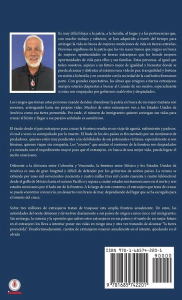 Es muy difícil dejar a la patria, a la familia, al hogar y a las pertenencias que, con mucho trabajo y esfuerzo, se han adquirido a través del tiempo para arriesgar la vida en busca de mejores condiciones de vida en tierras extrañas. Personas orgullosas de la patria que los vio nacer tienen que migrar en busca de mejores oportunidades en tierras extranjeras que les brinde mejores oportunidades de vida para ellos y sus familias. Estas personas, al igual que todos nosotros, aspiran a un futuro mejor de igualdad y bienestar donde se pueda alcanzar y disfrutar al máximo una vida de paz, tranquilidad y fortuna en unión a la familia y en conexión con la sociedad de la cual todos formamos parte. Con grandes expectativas, las almas que emigran a tierras extranjeras siempre estarán dispuestas a buscar al Canaán de sus sueños, especialmente si estas son empujadas por gobiernos malévolos y despiadados. Los riesgos que toman estas personas cuando deciden abandonar la patria en busca de un mejor mañana son enormes, arriesgando hasta sus propias vidas. Muchos de estos extranjeros ven a los Estados Unidos de América como esa tierra prometida. Por ende, el número de inmigrantes quienes arriesgan sus vidas para cruzar el límite y llegar a ese paraíso anhelado es asombroso. El éxodo desde el país extranjero para cruzar la frontera resulta en un viaje de agonía, sufrimiento y padecer, el cual a veces va acompañado por la muerte. El linde de los dos países es frecuentado por un sinnúmero de predadores, quienes están muy pendientes a las debilidades de sus potenciales víctimas, especialmente si son féminas, quienes viajan sin compañía. Los "coyotes" que anidan el contorno de la frontera son despiadados y a menudo son el impedimento mayor para que el extranjero, en busca de una mejor vida, pueda lograr el sueño americano. Diferente a la divisoria entre Colombia y Venezuela, la frontera entre México y los Estados Unidos de América es una de gran longitud y difícil de defender por los gobiernos de ambos países. La misma se extiende por unas mil novecientos cincuenta y cuatro millas (tres mil ciento cuarenta y cuatro kilómetros) desde el golfo de México hasta el océano Pacífico y separa a cuatro estados norteamericanos en el norte y seis estados mexicanos por el lado sur de la frontera. A lo largo de este contorno, el extranjero que trata de cruzar se puede encontrar con un río, un desierto o un brazo de mar, dependiendo del lugar que se ha escogido para el intento del cruce. Sobre tres millones de extranjeros tratan de traspasar esta amplia frontera anualmente. De estos, las autoridades del norte detienen y devuelven diariamente a sus países de origen a unos cinco mil inmigrantes. Sin embargo, la miseria y la opresión que sufren estos extranjeros en sus países y el sueño de un mejor futuro en el extranjero los lleva a intentar poner sus vidas en riesgo una y otra vez tratando de alcanzar "la tierra prometida". Desafortunadamente, cientos de extranjeros mueren anualmente en el intento, quedando en el olvido.