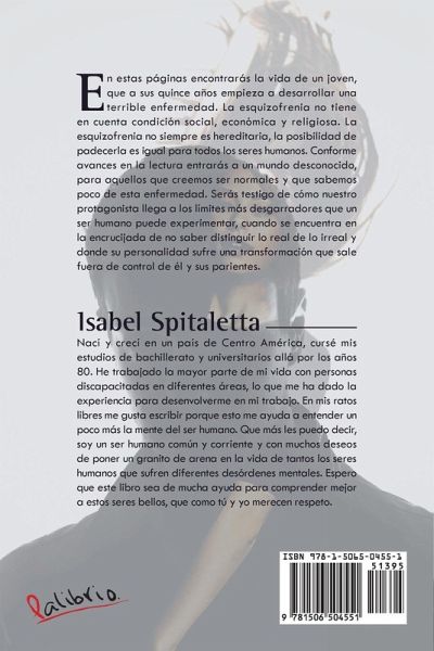En estas páginas encontrarás la vida de un joven, que a sus quince años empieza a desarrollar una terrible enfermedad. La esquizofrenia no tiene en cuenta condición social, económica y religiosa. La esquizofrenia no siempre es hereditaria, la posibilidad de padecerla es igual para todos los seres humanos. Conforme avances en la lectura entrarás a un mundo desconocido, para aquellos que creemos ser normales y que sabemos poco de esta enfermedad. Serás testigo de cómo nuestro protagonista llega a los límites más desgarradores que un ser humano puede experimentar, cuando se encuentra en la encrucijada de no saber distinguir lo real de lo irreal y donde su personalidad sufre una transformación que sale fuera de control de él y sus parientes.