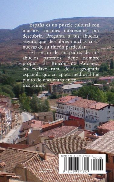 España es un puzzle cultural con muchos rincones interesantes por descubrir. Pregunta a tus abuelos, seguro que descubres muchas cosas nuevas de su rincón particular. El rincón de mi padre, de mis abuelos paternos, tiene nombre propio: El Rincón de Ademuz, un exclave rural de la geografía española que en época medieval fue punto de encuentro entre tres reinos. Un libro escrito con 2 páginas en blanco al final, para que seas tú quien relate alguna vivencia, esboce algún cuento o escriba una dedicatoria a alguien muy especial.