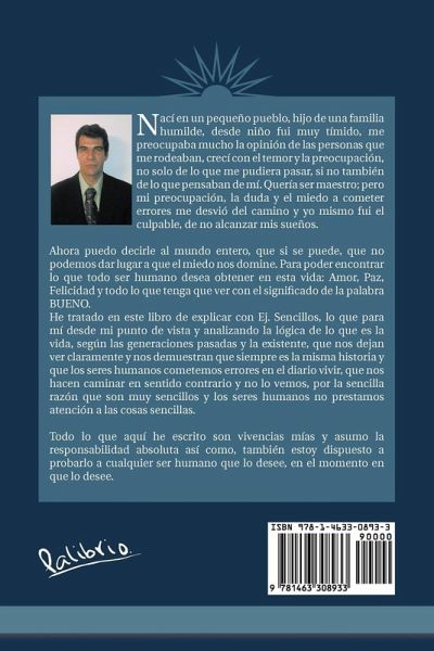 Nací en un pequeño pueblo, hijo de una familia humilde, desde niño fui muy tímido, me preocupaba mucho la opinión de las personas que me rodeaban, crecí con el temor y la preocupación, no solo de lo que me pudiera pasar, si no también de lo que pensaban de mí. Quería ser maestro; pero mi preocupación, la duda y el miedo a cometer errores me desvió del camino y yo mismo fui el culpable, de no alcanzar mis sueños. Ahora puedo decirle al mundo entero, que si se puede, que no podemos dar lugar a que el miedo nos domine. Para poder encontrar lo que todo ser humano desea obtener en esta vida: Amor, Paz, Felicidad y todo lo que tenga que ver con el significado de la palabra BUENO. He tratado en este libro de explicar con Ej. Sencillos, lo que para mí desde mi punto de vista y analizando la lógica de lo que es la vida, según las generaciones pasadas y la existente, que nos dejan ver claramente y nos demuestran que siempre es la misma historia y que los seres humanos cometemos errores en el diario vivir, que nos hacen caminar en sentido contrario y no lo vemos, por la sencilla razón que son muy sencillos y los seres humanos no prestamos atención a las cosas sencillas. Todo lo que aquí he escrito son vivencias mías y asumo la responsabilidad absoluta así como, también estoy dispuesto a probarlo a cualquier ser humano que lo desee, en el momento en que lo desee.
