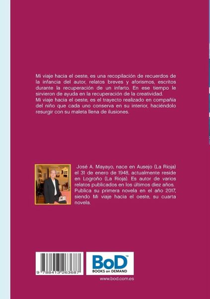 Mi camino hacia el oeste, es una recopilación de recuerdos de la infancia del autor, relatos breves y aforismos, escritos durante la recuperación de un infarto. En ese tiempo le sirvieron de ayuda en la recuperación de la creatividad. Mi camino hacia el oeste, es el trayecto realizado en compañía del niño que cada uno lleva en su interior, haciéndolo resurgir con la maleta llena de ilusiones.